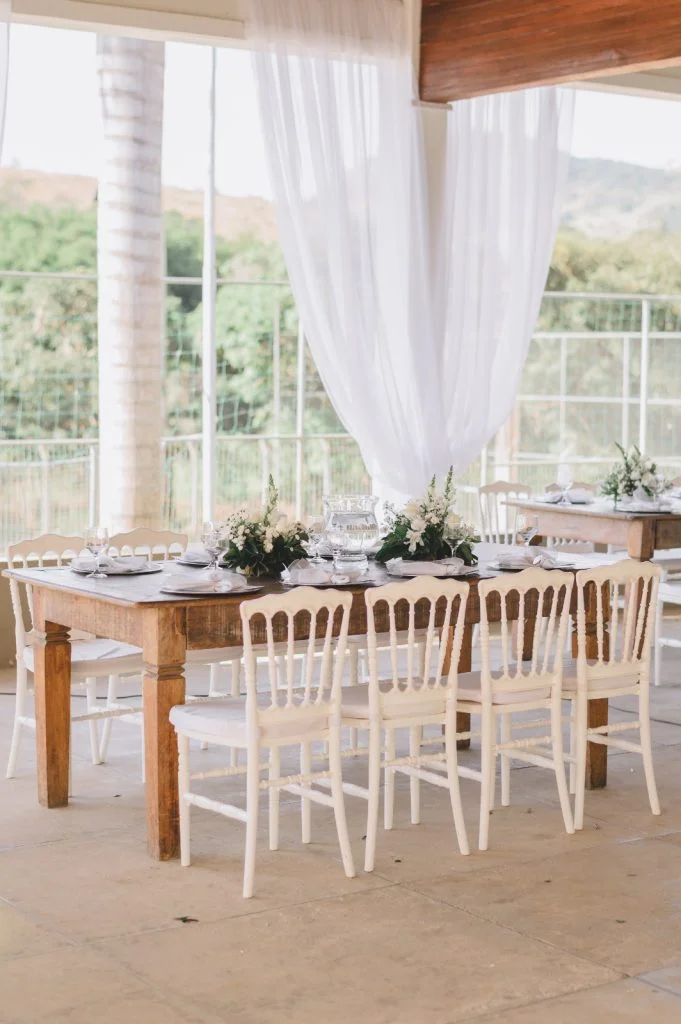 Utilização: composição das mesas da família e de convidados, para acomodar os convidados da cerimônia de casamento.