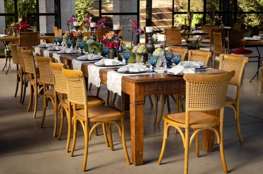 Utilização: Cadeira de design bastante versátil utilizada em mesas da família (uma dica é usar cadeiras Katrina natural nas mesas de convidados). Perfeita em decorações estilo rústico, boho.
